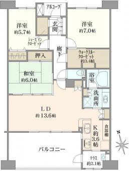 | バルコニー | 18.00m2 | 主要採光方向 | 南西 |