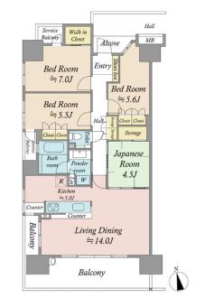 | バルコニー | 17.26m2 | 主要採光方向 | 南 |