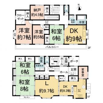 | 土地面積 | 183.32m2(55.4坪) 登記簿 | 建物延面積 | 185.41m2 |