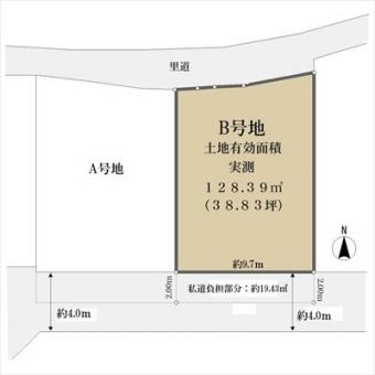 | 土地面積 | 128.39m2(38.8坪) 実測 別途私道負担約19.4m2 | ||