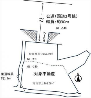 | 備考 | 地目:宅地・雑種地・畑■敷地の一部を月極駐車場として賃貸中(解約予定)土地面積:624.47平米(1.但し古家あり2.土地の地勢は2段宅地:宅地部分:362.08平米、駐車場部分262.39平米) |