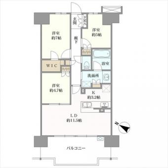 | 間取り | 3LDK+WIC | 専有面積 | 70.72m2(21.3坪) 壁芯 |