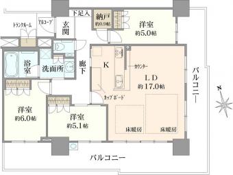 | 間取り | 3LDK | 専有面積 | 85.46m2(25.8坪) 壁芯 |