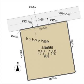 | 土地面積 | 241.83m2(73.1坪) 登記簿 (セットバック要約3.8m2) | ||