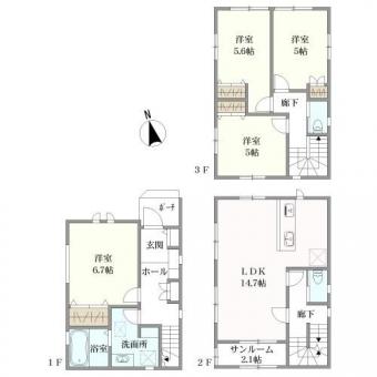 | 土地面積 | 74.72m2(22.6坪) 実測 | 建物延面積 | 99.22m2 |