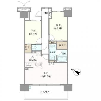 | 間取り | 2LDK | 専有面積 | 62.80m2(18.9坪) 壁芯 |
