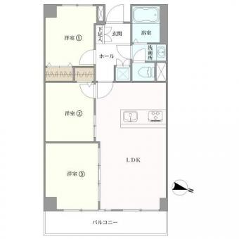 | 間取り | 3LDK | 専有面積 | 60.00m2(18.1坪) 壁芯 |