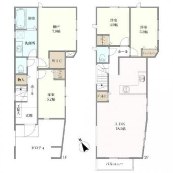 | 土地面積 | 89.41m2(27.0坪) 実測 別途私道負担102平米のうち持分12分の1 | 建物延面積 | 106.50m2 |