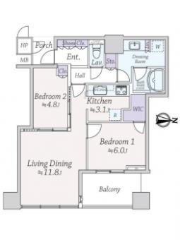 | 間取り | 2LDK | 専有面積 | 61.62m2(18.6坪) 壁芯 |