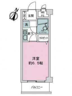 | 間取り | 1K | 専有面積 | 18.90m2(5.7坪) 壁芯 |