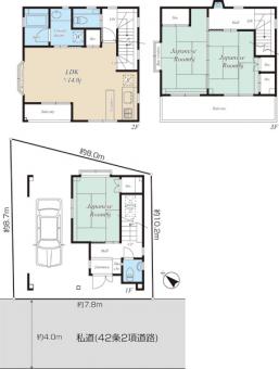 | 土地面積 | 60.87m2(18.4坪) 登記簿 | 建物延面積 | 89.60m2 |