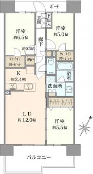 | 間取り | 3LDK | 専有面積 | 74.71m2(22.5坪) 壁芯 |