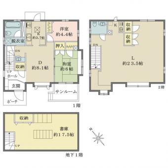 | 備考 | ◇三菱地所ホーム施工◇陽当り・通風良好。広々とした書庫付き。 1階部分間取り:2DK2階部分間取り:1LDK地下:書庫17.53帖一部構造(RC造) |