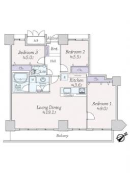 | 間取り | 3LDK | 専有面積 | 87.55m2(26.4坪) 壁芯 |