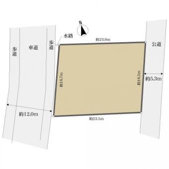 | 接道状況 | 一方 東約5.3m公道、間口:約18.5m | ||