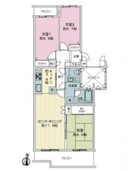 | バルコニー | 11.45m2 | 主要採光方向 | 南 |