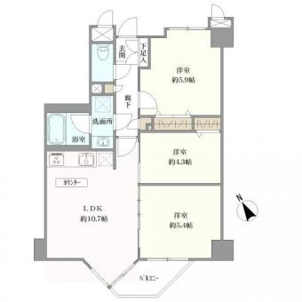 | 間取り | 3LDK | 専有面積 | 59.28m2(17.9坪) 壁芯 |
