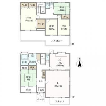 | 備考 | 附属建物 ①種類:車庫②構造:鉄筋コンクリート造陸屋根平家建③床面積:38.67平米・角地につき、建蔽率が60%に緩和されます。 ・WIC=ウォークインクローゼット |