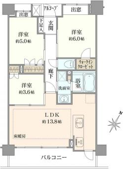 | 間取り | 3LDK | 専有面積 | 61.73m2(18.6坪) 壁芯 |