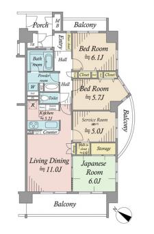 | 間取り | 3SLDK | 専有面積 | 82.39m2(24.9坪) 壁芯 |