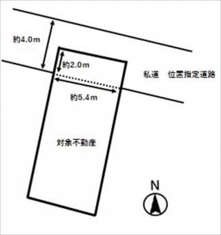 | 接道状況 | 一方 北東約4.0m公道、間口:約5.4m(位置指定道路) | ||