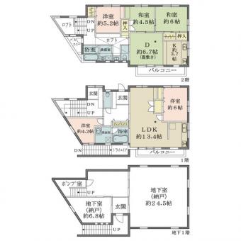 | 備考 | こだわりの2世帯注文住宅 ※角地につき建ぺい率50%に緩和※本物件は建築基準法に定める建ぺい率・容積率を超過しており、再建築の際には現在と同規模の建築物は建築できません。1階部分間取:2LDK 75.56m22階部分間取:3DK 74.19m2地下:2S 73.07m2(RC造) |