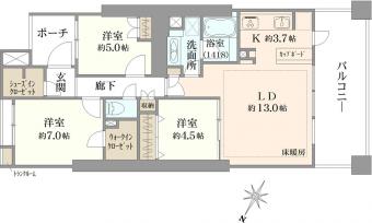 | バルコニー | 13.00m2 | 主要採光方向 | 西 |