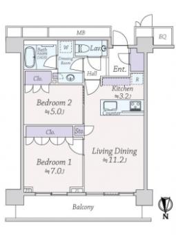 | 間取り | 2LDK | 専有面積 | 61.82m2(18.7坪) 壁芯 |