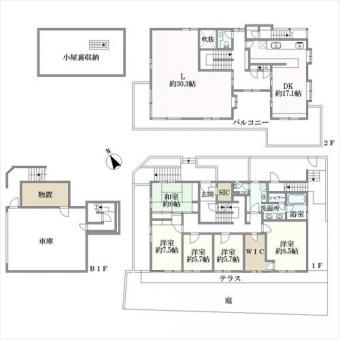 | 備考 | WIC=ウォークインクローゼット、SIC=シューズインクローゼット、家具等は販売価格に含まれません。延床面積に車庫・物置面積59.58㎡含む(登記簿謄本に基づく記載)、建物構造:鉄筋コンクリート・木造スレート葺 |