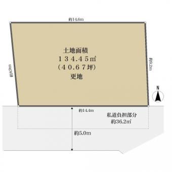 | 土地面積 | 134.45m2(40.6坪) 登記簿 別途私道負担約36.2m2 | ||