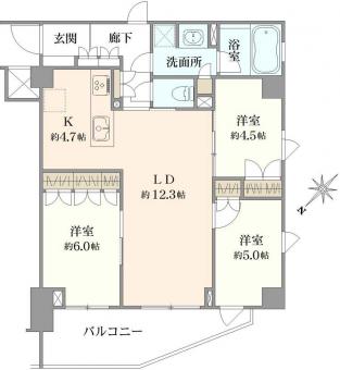| バルコニー | 10.22m2 | 主要採光方向 | 北西 |