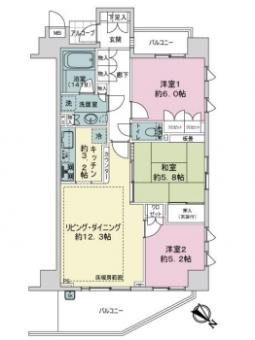 | 間取り | 3LDK | 専有面積 | 73.84m2(22.3坪) 壁芯 |