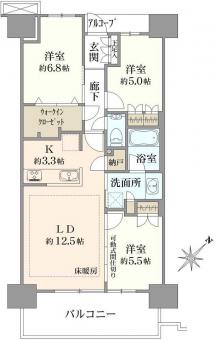 | 間取り | 3LDK | 専有面積 | 73.86m2(22.3坪) 壁芯 |