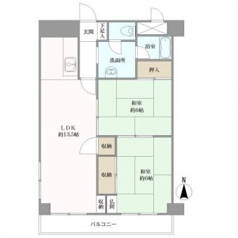| 間取り | 2LDK | 専有面積 | 56.61m2(17.1坪) |