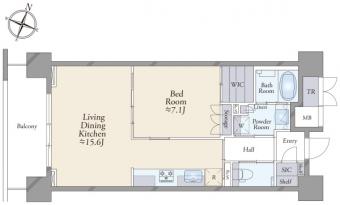 | 間取り | 1LDK | 専有面積 | 56.18m2(16.9坪) 壁芯 |