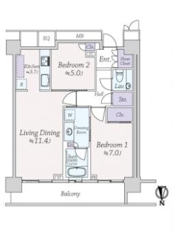 | バルコニー | 11.73m2 | 主要採光方向 | 北 |