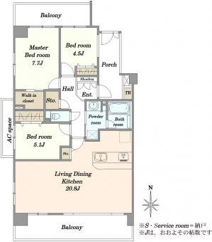 | バルコニー | 20.98m2 | 主要採光方向 | 南 |