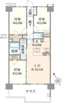 | 間取り | 3LDK | 専有面積 | 62.93m2(19.0坪) 壁芯 |