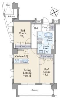 | 間取り | 2LDK | 専有面積 | 60.65m2(18.3坪) 壁芯 |