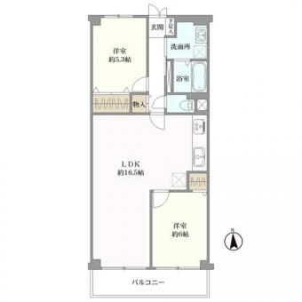 | 間取り | 2LDK | 専有面積 | 61.60m2(18.6坪) 壁芯 |