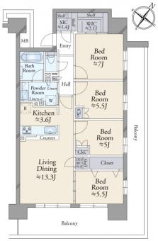 | 間取り | 4SLDK | 専有面積 | 91.20m2(27.5坪) 壁芯 |