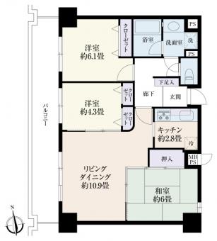 | 間取り | 3LDK | 専有面積 | 67.47m2(20.4坪) 壁芯 |