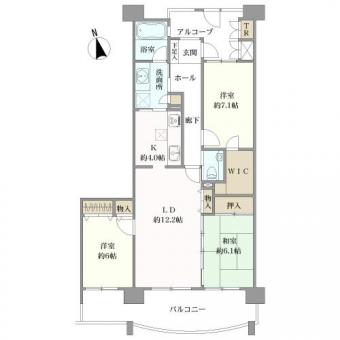 | 間取り | 3LDK | 専有面積 | 84.77m2(25.6坪) 壁芯 |