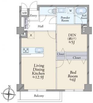 | 間取り | 1SLDK | 専有面積 | 57.08m2(17.2坪) 壁芯 |