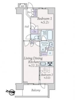| 間取り | 2LDK | 専有面積 | 46.20m2(13.9坪) 壁芯 |