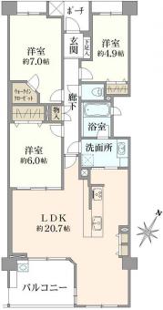 | 間取り | 3LDK | 専有面積 | 85.55m2(25.8坪) 壁芯 |