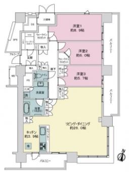 | 間取り | 3LDK | 専有面積 | 116.77m2(35.3坪) 壁芯 |