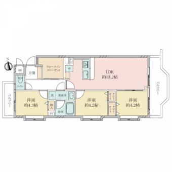 | 間取り | 3LDK | 専有面積 | 63.00m2(19.0坪) 壁芯 |