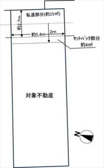 | 接道状況 | 一方 北東約2.7m公道、間口:約5.4m | ||