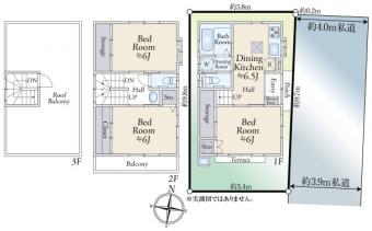 | 土地面積 | 55.76m2(16.8坪) 登記簿 別途私道負担16.35m2 | 建物延面積 | 66.24m2 |